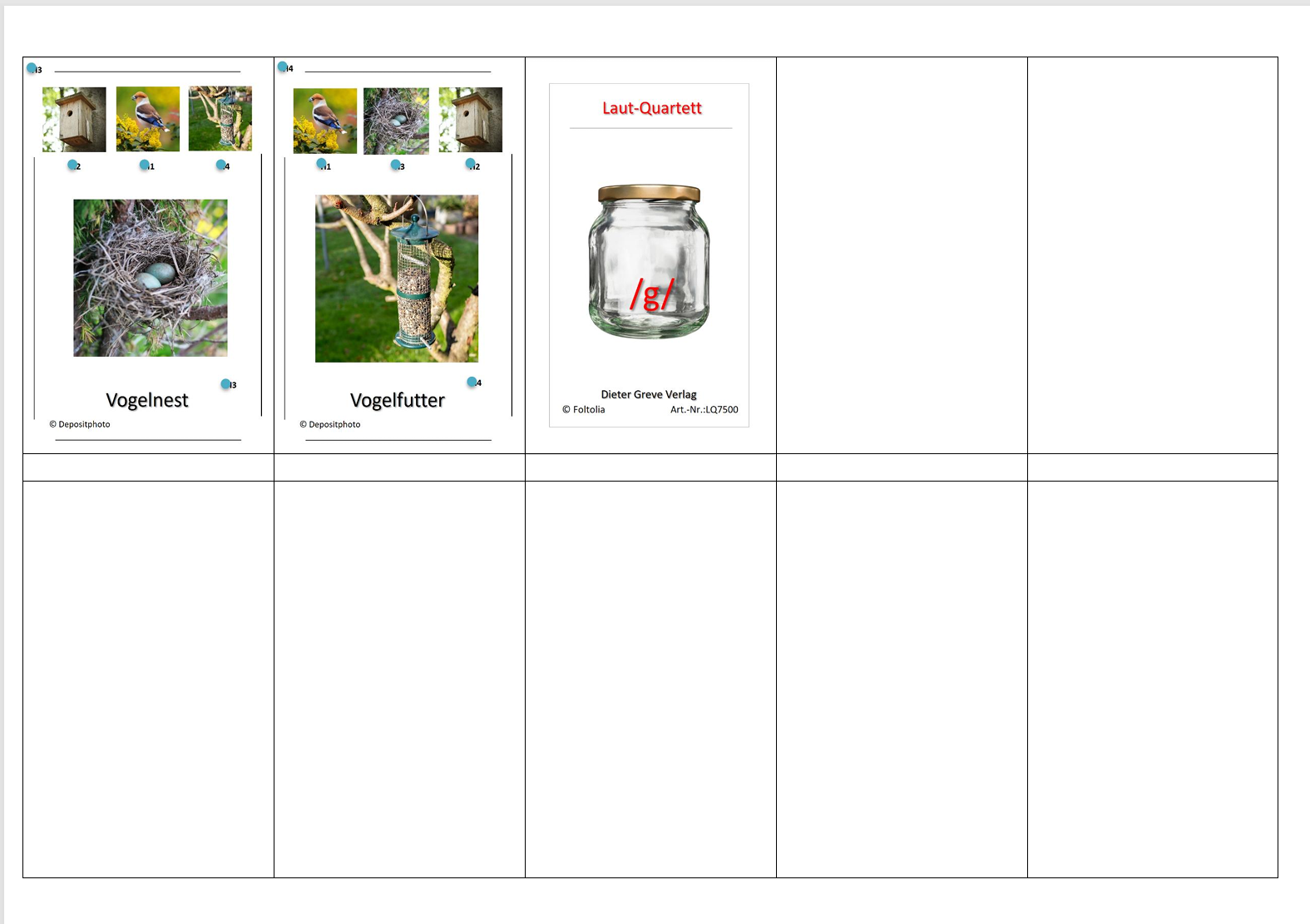 Mit dem Laut-Quartett – Laut /g/ entdecken Kinder spielerisch den stimmhaften Verschlusslaut /g/ – wie in Gans, Gold oder Glas.