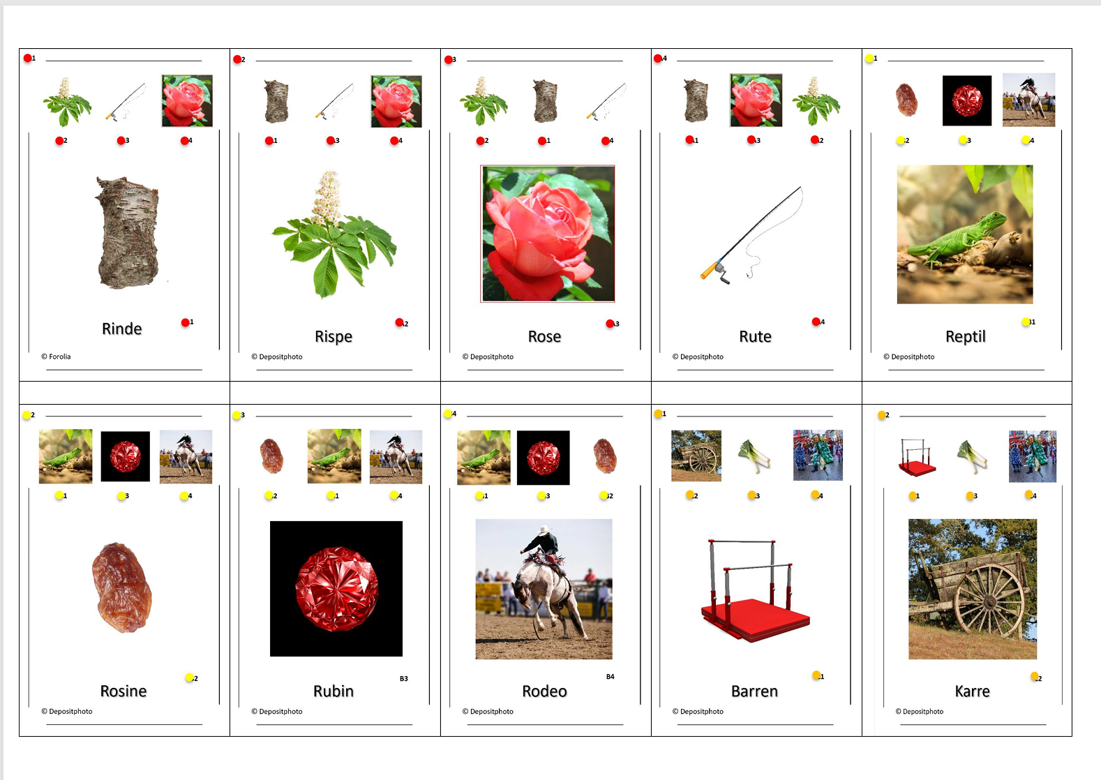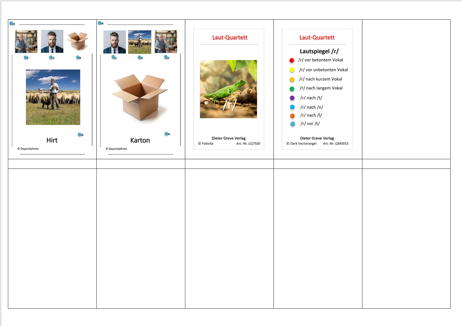 Mit dem Laut-Quartett – Laut /r/ lernen Kinder spielerisch, den Laut /r/ in verschiedenen Wortpositionen zu hören, zu erkennen und richtig auszusprechen.