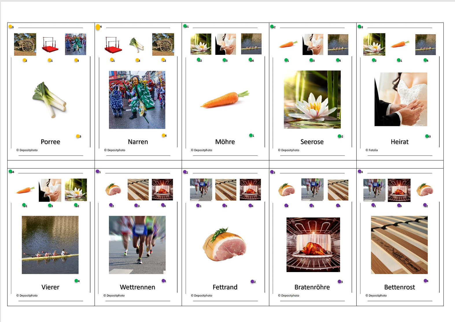 Die klaren, realistischen Fotos erleichtern das Erkennen und Benennen und fördern semantische Netzwerke – ideal für Kinder, Patient*innen und ältere Menschen.