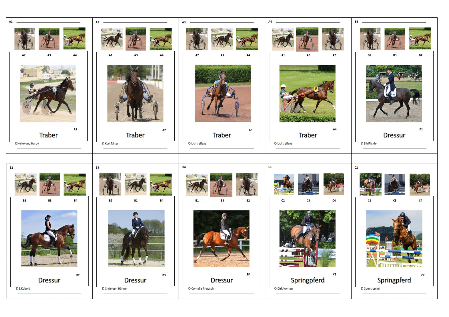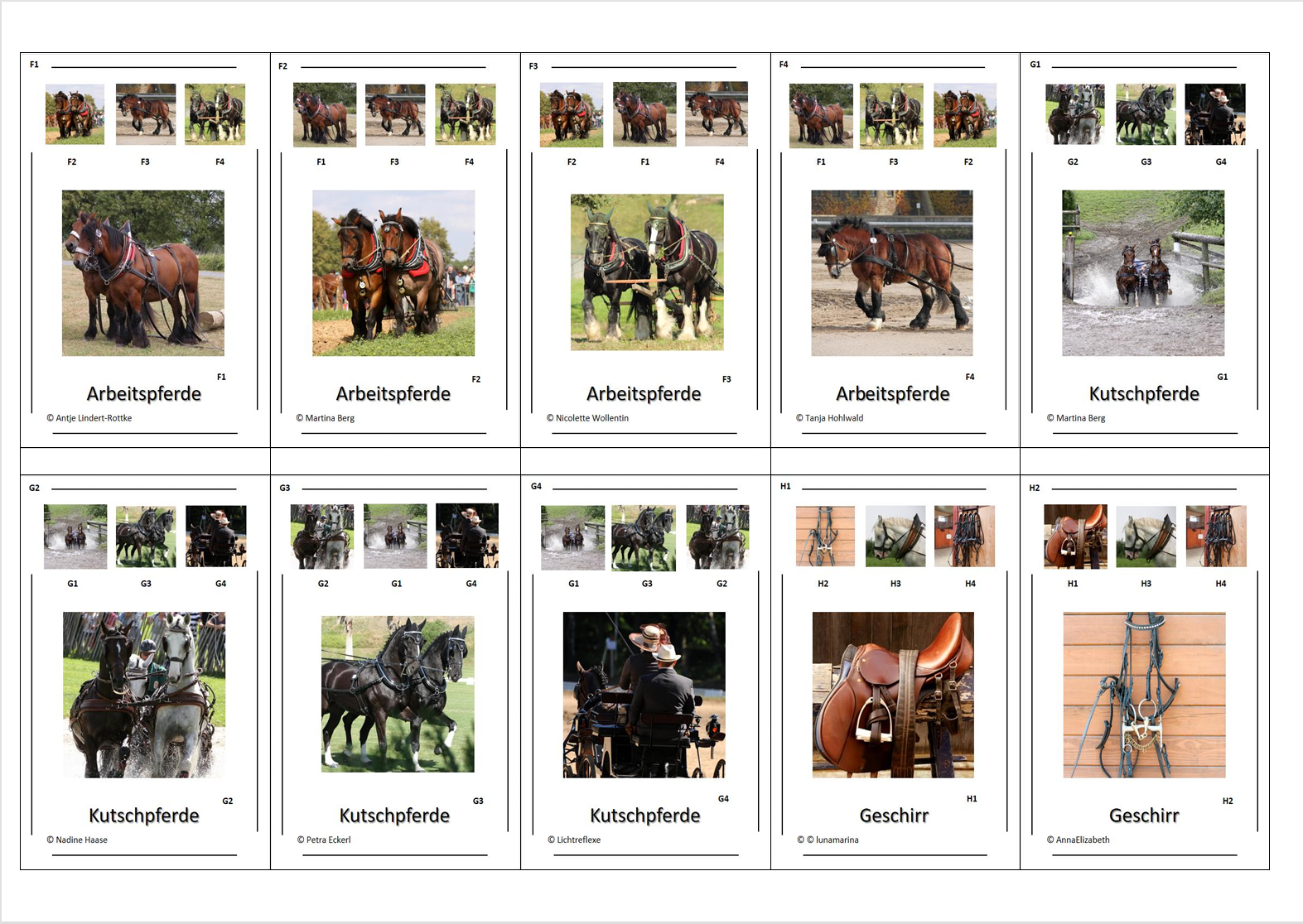 Gefertigt aus stabilem 250g Bilderdruckpapier im handlichen Format (90 × 57 mm), liegen die Karten angenehm in der Hand und sind robust genug für häufiges Spielen – im Klassenzimmer, Reitstall oder Zuhause.